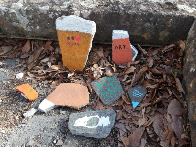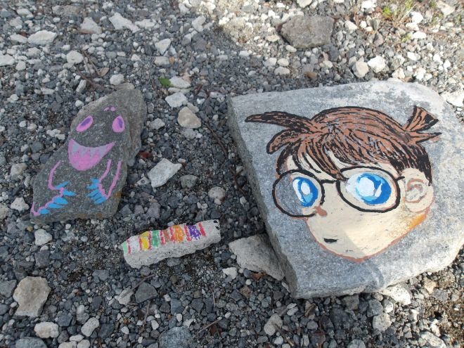 コスモホールの目の前には、水は流れていないけれど、川のかたちをした自然を感じるスペースがあります。今回はその“川”を舞台に、石に絵を描いて不思議ないきものを作るという、ちょっとユニークなアート体験をご用意しました。