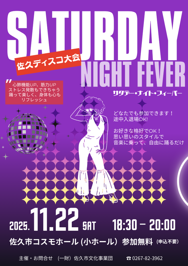 佐久ディスコ大会!サタデーナイトフィーバー開催 11月22日(土)