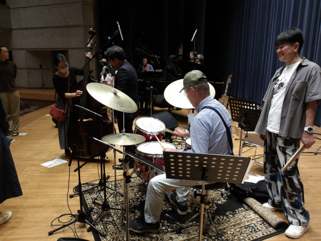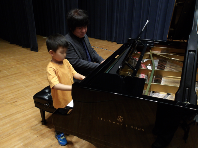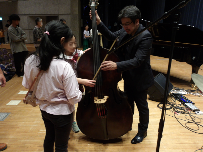 コンサート終了後には、ピアノやドラム、ベースの楽器体験ワークショップを開催。