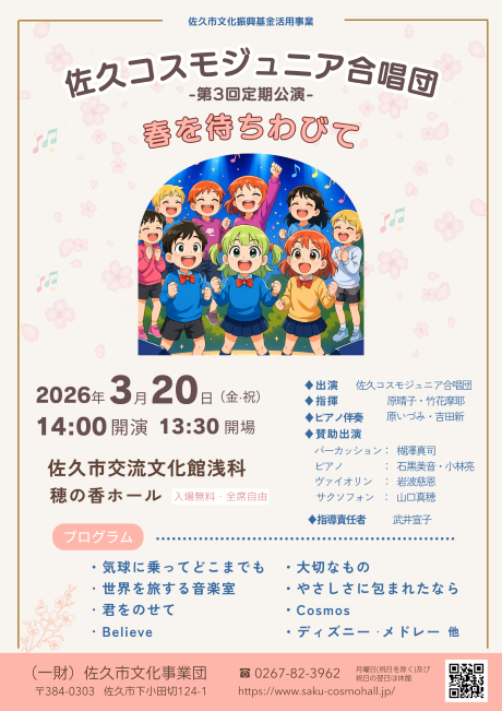 佐久コスモジュニア合唱団 第3回定期公演開催 令和8年3月20日(金/祝)